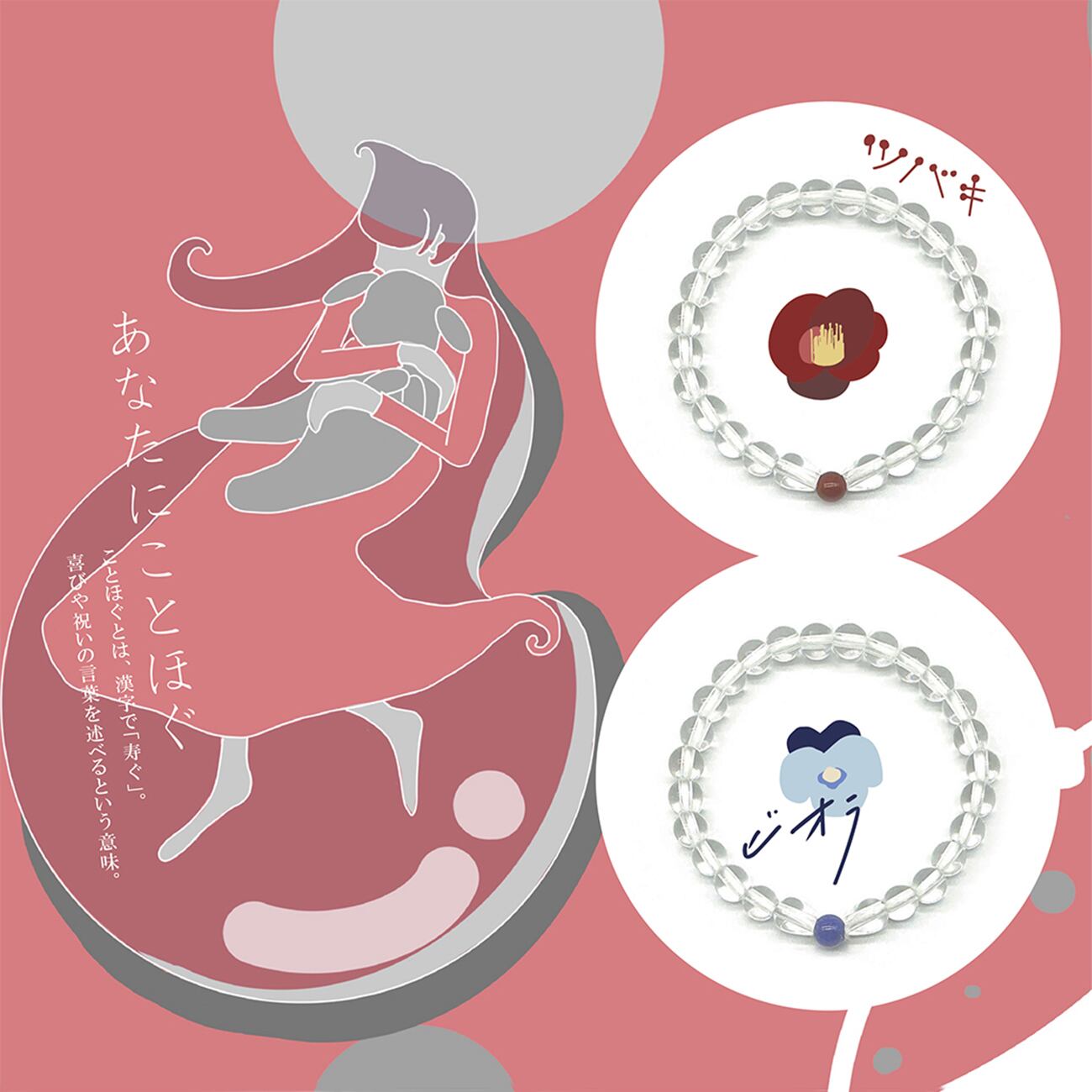 ブレスレットの新シリーズ「いつか」。こちらは成人式を迎える母と娘の関係性に焦点を当てております。社会において大人だと認識された子の旅立ちの時は近いと思います。遠く離れる日にも、いつも笑顔でいられるようにシンプルだけど、肌身離さずつけてみたい、そんなブレスレットに出来上がっております。ツユ(涙型のパーツ)とツユの間にメノーを挟んでリボンのイメージを再現。アクセントには愛情の色を感じられるメノーを選びました。