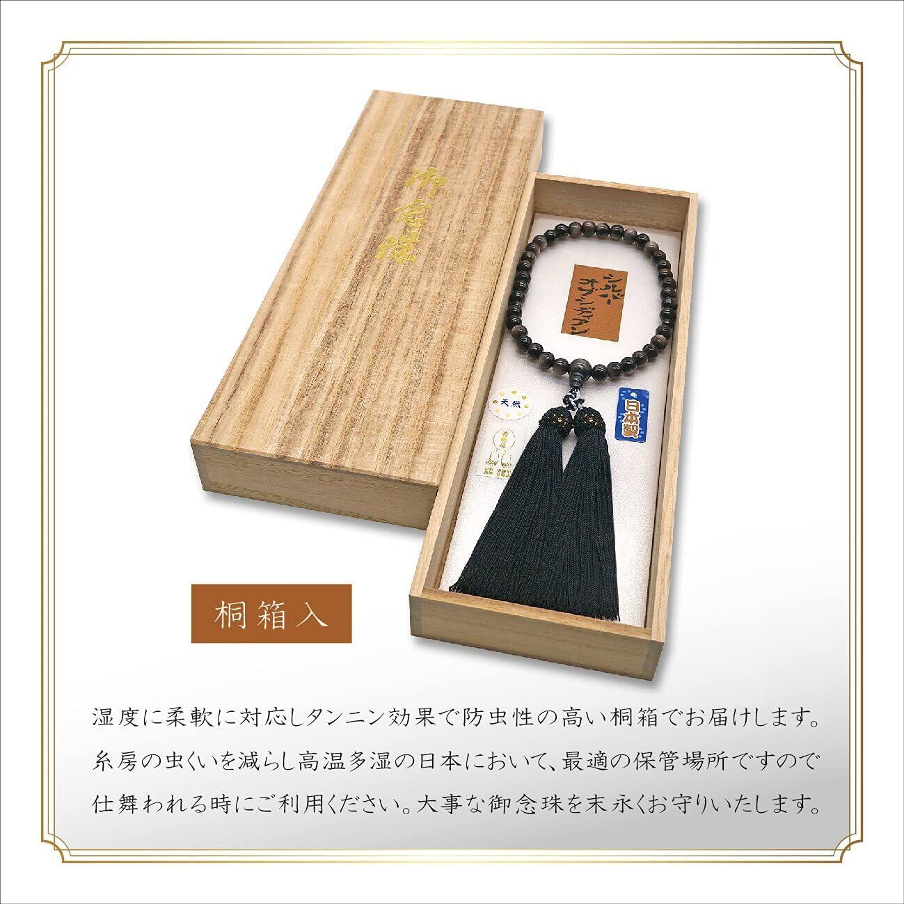 ・ 防虫、防湿効果を持ち、大切な御念珠を保管するに相応しい桐箱(日本製)へ納めてお届けします。外箱サイズ 幅93mm×奥行256mm×高さ29mm