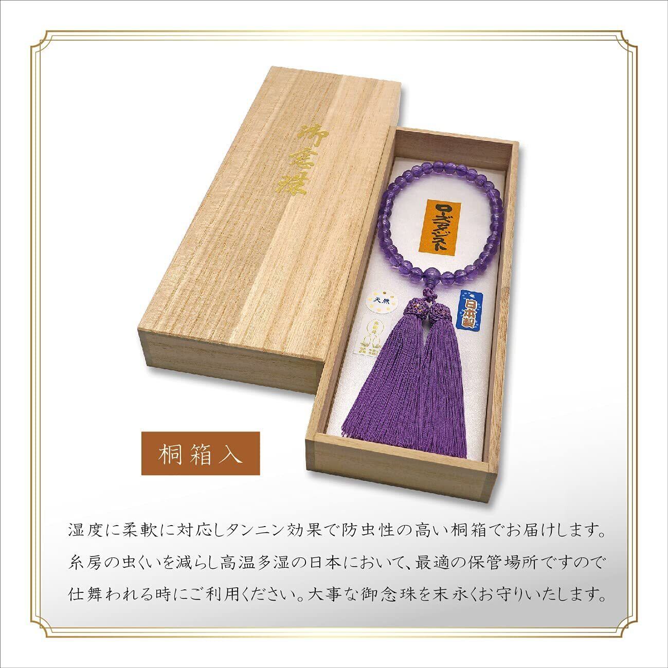 ・ 防虫、防湿効果を持ち、大切な御念珠を保管するに相応しい桐箱(日本製)へ納めてお届けします。外箱サイズ 幅93mm×奥行256mm×高さ29mm