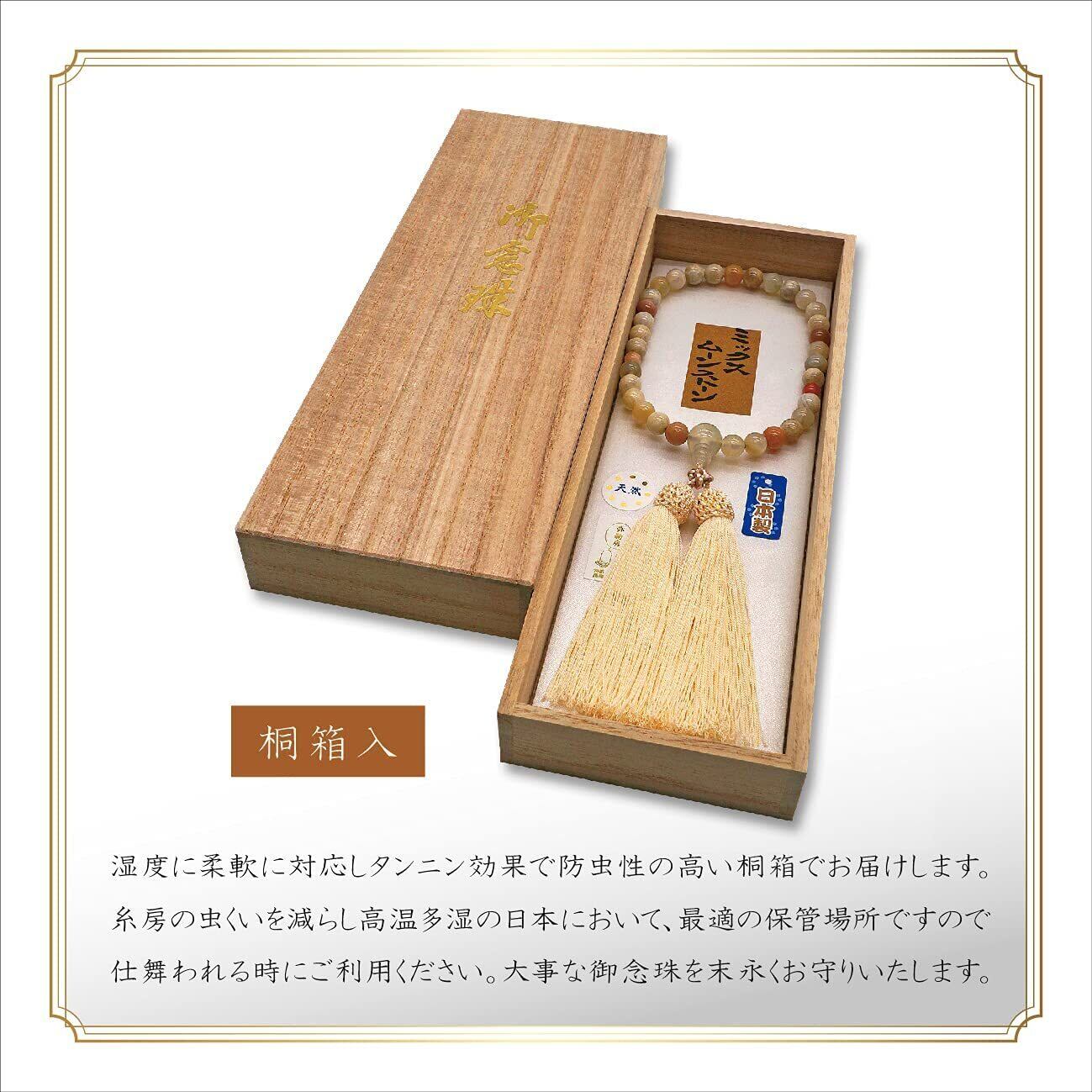 ・ 防虫、防湿効果を持ち、大切な御念珠を保管するに相応しい桐箱(日本製)へ納めてお届けします。外箱サイズ 幅93mm×奥行256mm×高さ29mm